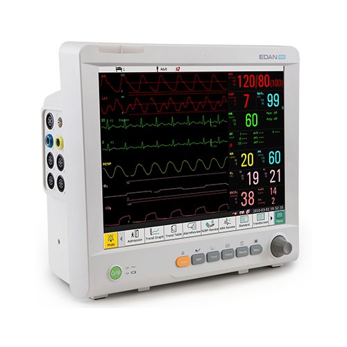 ln-hospital application include emergency, pre-and post-operative care, ambulatory surgery, intermediate care/step down units, labor and hospital-based special procedure areas. Networking capacity and nurse call system. Large volume of tabular and graphic trends information storage and easy to recall. Capture dynamic waveforms. In-built Rechargeable battery which provides a backup time of upto 4 hours. User friendly menu structure with easy to use rotary dial. Protection Against electrosurgical interference and defibrillation. Intelligent audio and visual comprehensive alarm. Volume adjustment possible.